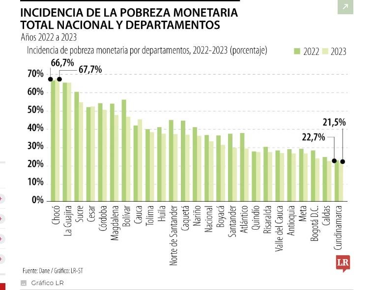 CHOCÓ Y LA GUAJIRA LIDERAN LA LISTA DE DEPARTAMENTOS CON MAYOR POBREZA MONETARIA EN 2023, SEGÚN EL DANE