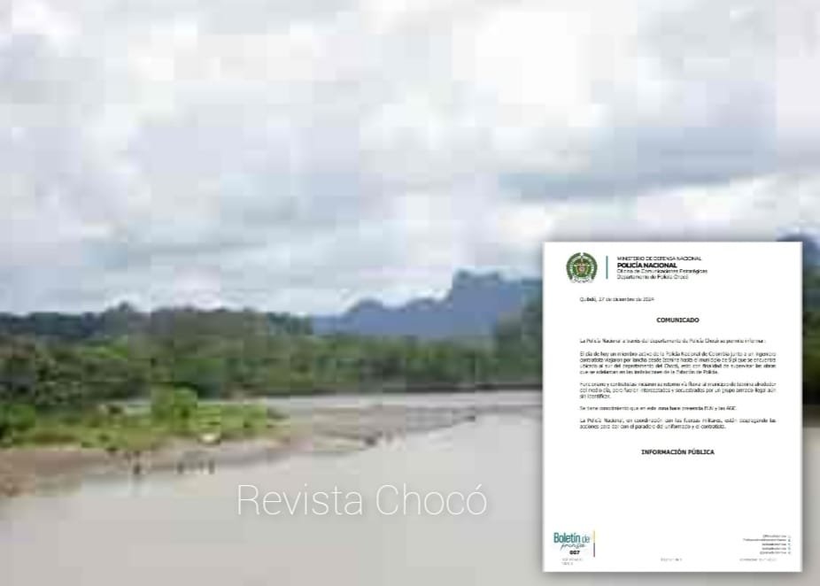 SECUESTRO EN EL CHOCÓ: INGENIERO Y POLICÍA RETENIDOS POR GRUPO ARMADO EN LA VÍA FLUVIAL ENTRE SIPI E ISTMINA