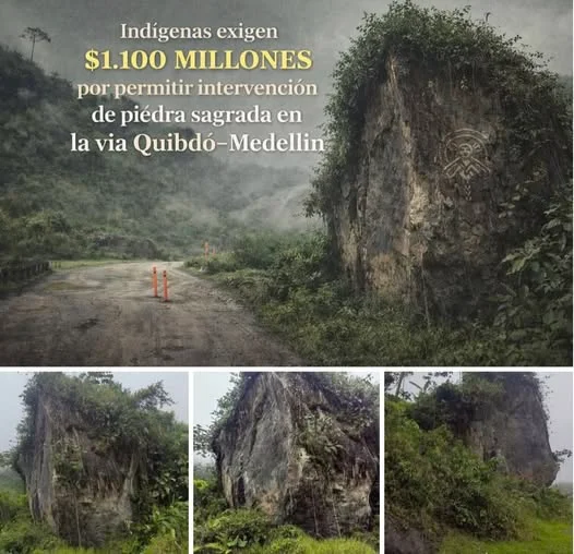 INDÍGENAS EXIGEN $1.100 MILLONES POR PERMITIR INTERVENCIÓN DE PIEDRA SAGRADA EN LA VÍA QUIBDÓ–MEDELLÍN