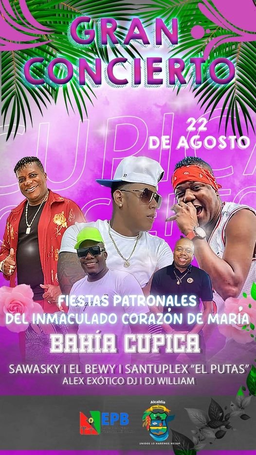 La vibrante celebración de las fiestas patronales del Inmaculado Corazón de María en Bahía Cupica llegará a su punto culminante este jueves 22 de agosto con un espectacular concierto de cierre. El evento promete ser una noche inolvidable llena de música, alegría y celebración, destacando lo mejor de nuestra fe y cultura.