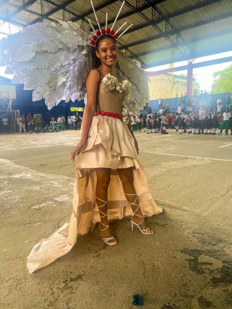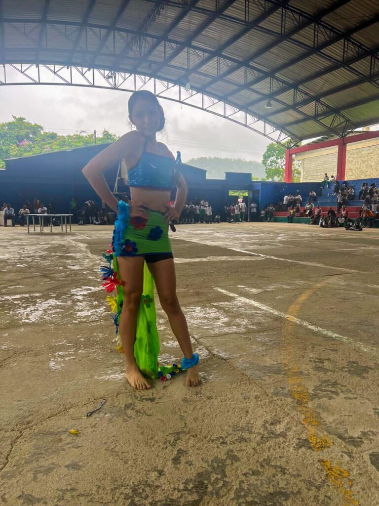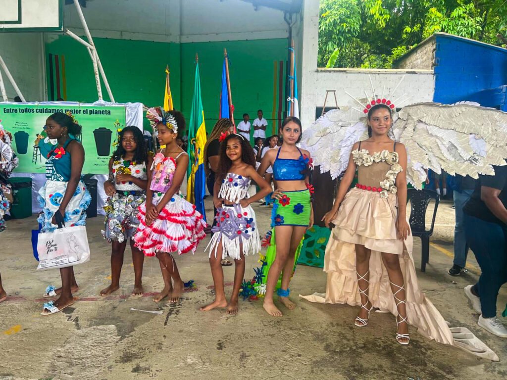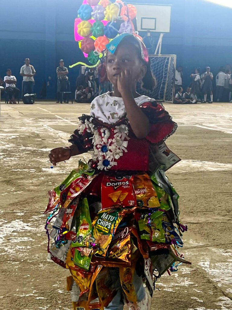 Uno de los momentos más destacados de la jornada fue el desfile de trajes confeccionados exclusivamente con materiales reciclables. Desde coloridos vestidos hasta ingeniosos accesorios, cada creación exhibida en la pasarela reflejaba el talento y la creatividad de los participantes, así como su compromiso con la reutilización y el reciclaje.