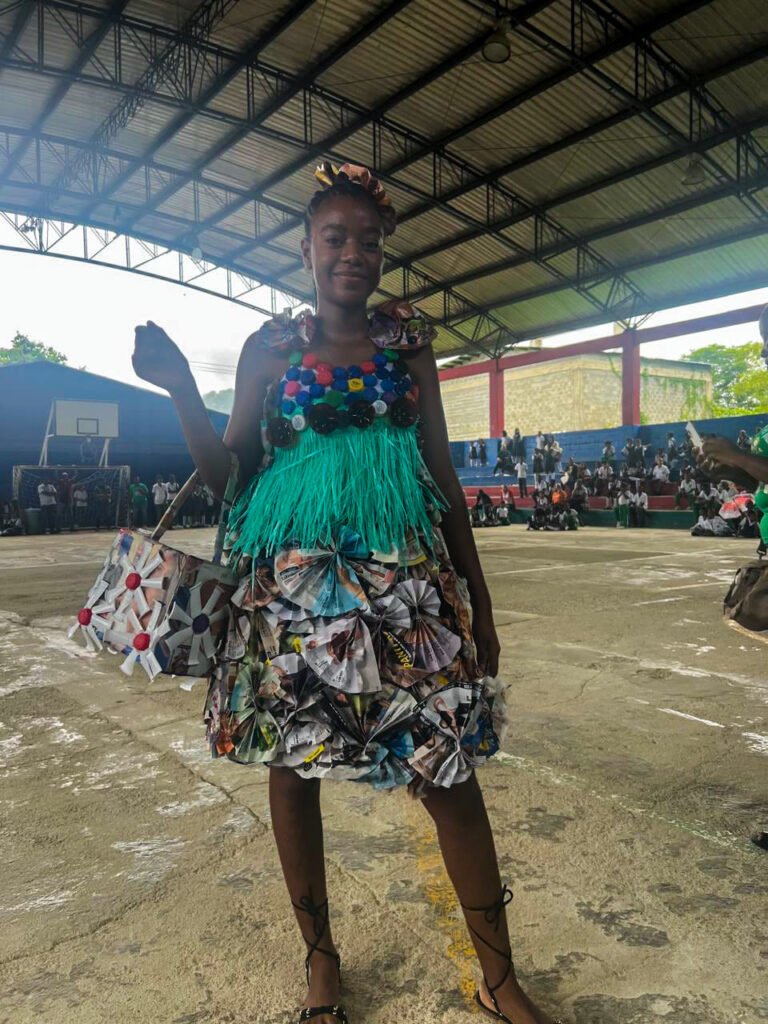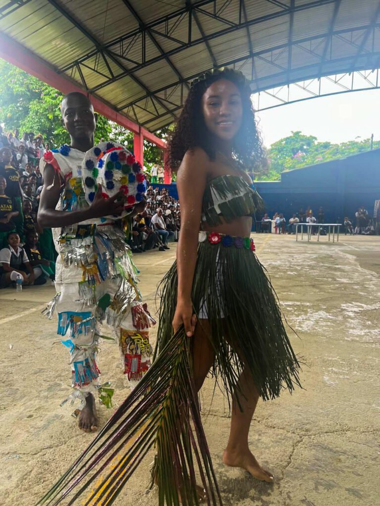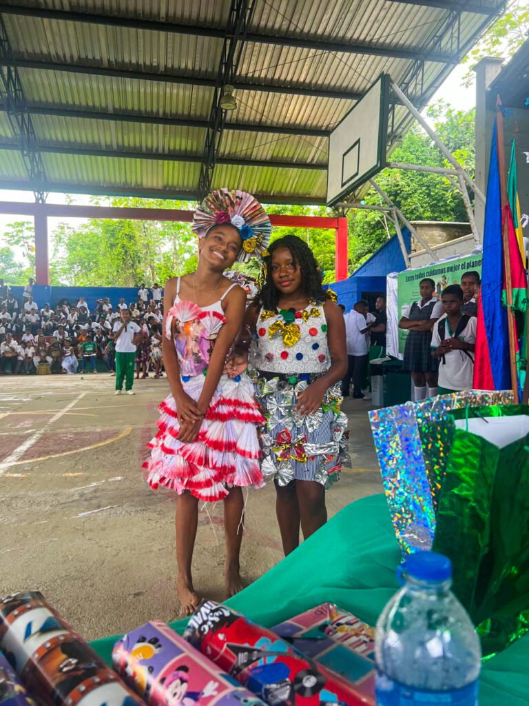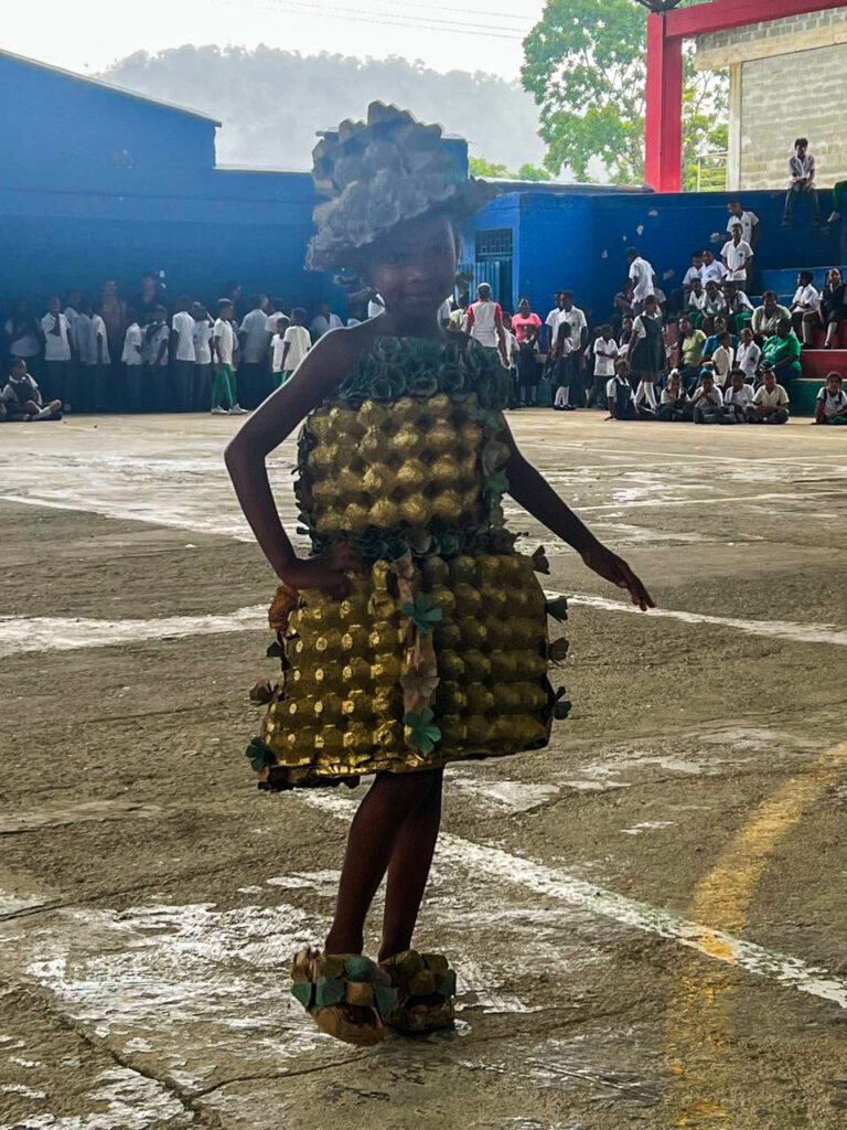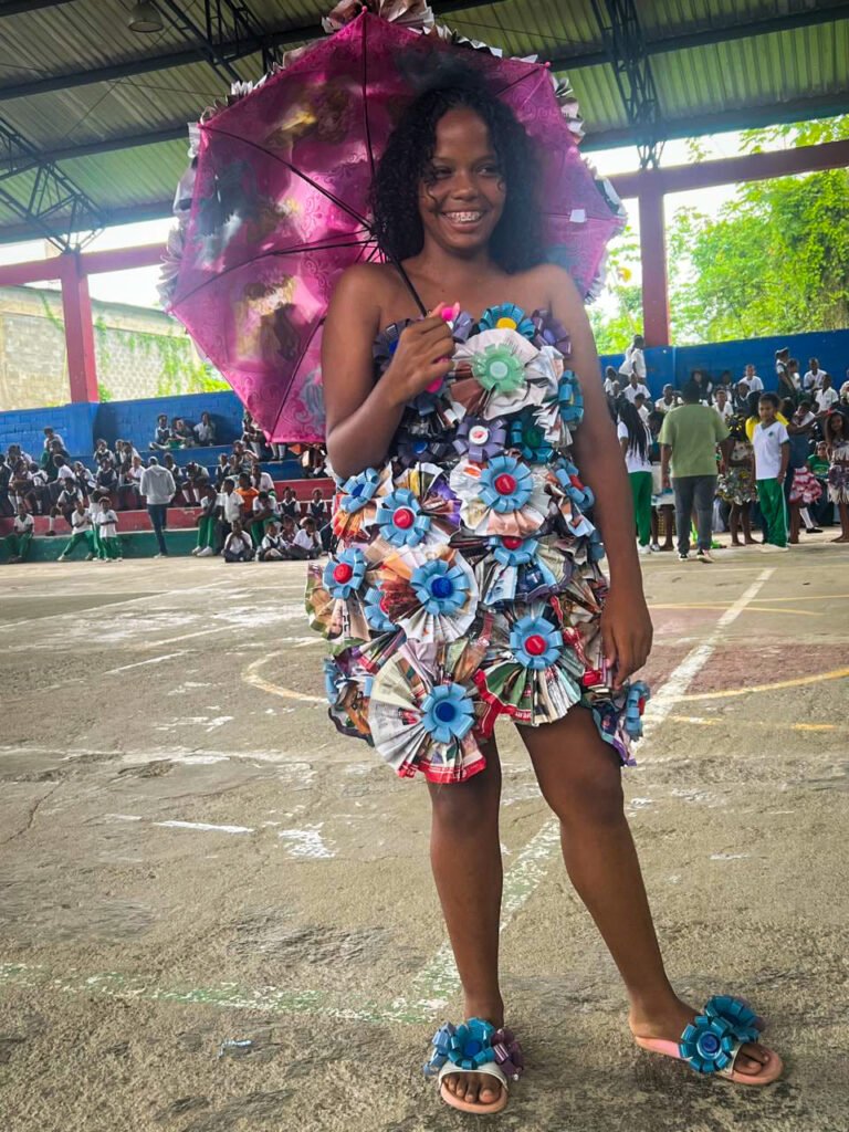 Uno de los momentos más destacados de la jornada fue el desfile de trajes confeccionados exclusivamente con materiales reciclables. Desde coloridos vestidos hasta ingeniosos accesorios, cada creación exhibida en la pasarela reflejaba el talento y la creatividad de los participantes, así como su compromiso con la reutilización y el reciclaje.