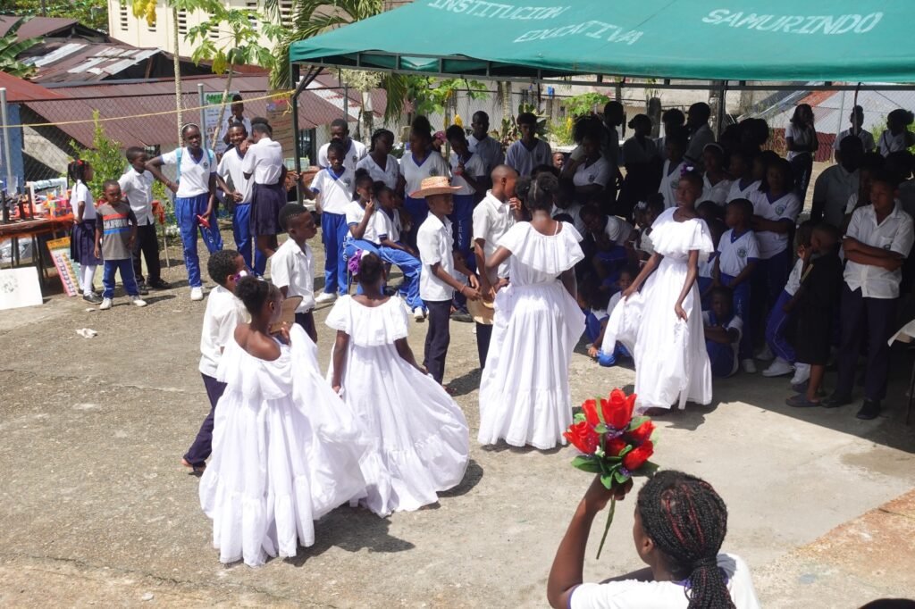 El evento estuvo animado con chirimía, presentaciones artísticas como danza y alabao, que llenaron de color y ritmo el ambiente. También se realizó un desfile de moda con prendas hechas de material reciclado, demostrando cómo la sostenibilidad puede ser compatible con la belleza y la moda. Además, los asistentes pudieron disfrutar de degustaciones de platos típicos, dulces, frutas y bebidas naturales preparadas con plantas de la región, lo que fue una oportunidad para celebrar la riqueza gastronómica y cultural de la comunidad.