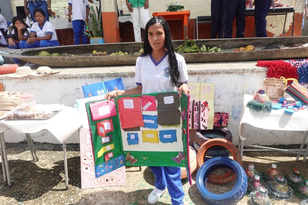 La segunda sección del evento brindó a los invitados, que incluían padres de familia, estudiantes, la comunidad en general y representantes de fundaciones y comerciantes, líderes comunitarios, concejales, la oportunidad de recorrer los diferentes puestos donde los estudiantes presentaron sus proyectos en categorías como Ciencias de la Vida, Ciencias de la Tierra, Física y Química, Tecnología y Arte. Los estudiantes también tuvieron la oportunidad de dialogar en inglés, embera y katio, lo que fomentó el intercambio cultural y lingüístico entre los presentes. Además, se exhibieron emprendimientos de estudiantes y miembros de la comunidad basados en las 7R de la economía circular: rediseñar, reducir, reutilizar, reparar, renovar, recuperar y reciclar. Estos emprendimientos destacaron la creatividad y el compromiso de la comunidad educativa con el medio ambiente y el desarrollo sostenible.
