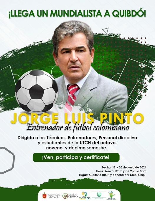 La gobernación del Chocó informó este jueves que Jorge Luís Pinto Afanador  protagonizará un seminario teórico-práctico sobre entrenamiento deportivo en la ciudad de Quibdó, gracias a la articulación de la Gobernación, la Alcaldía de Quibdó, la Universidad Tecnológica del Chocó y la Fundación Talentos del Pacífico.