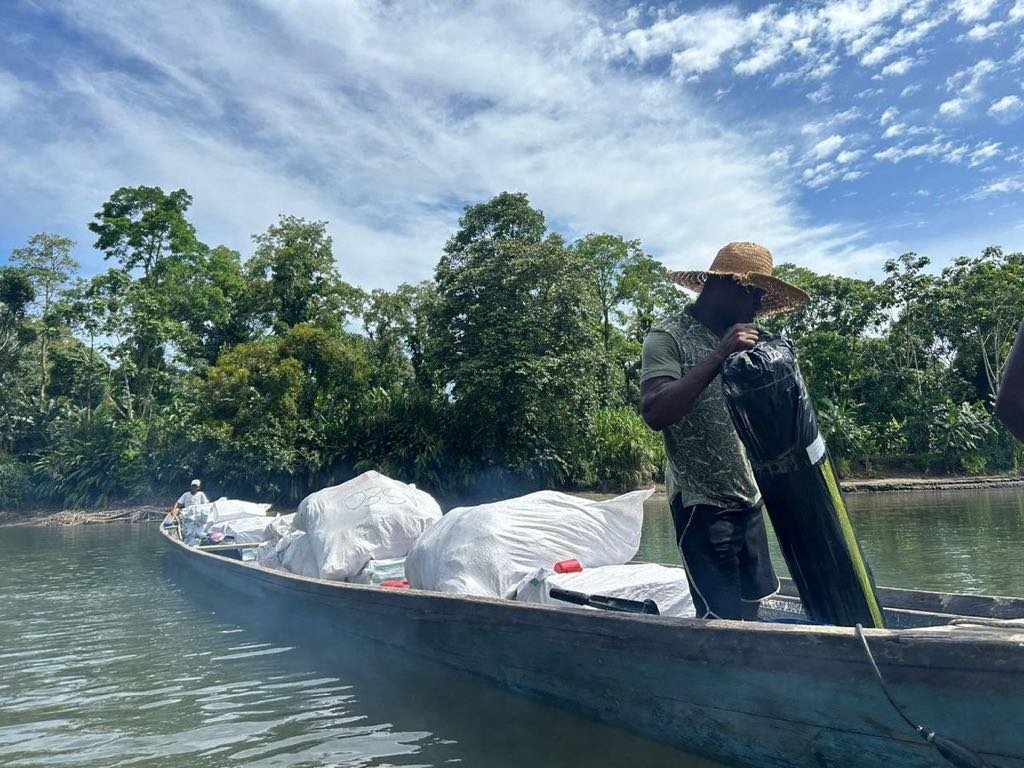 Un total de 23 toneladas de alimentos y productos de aseo fueron transportados por tierra y agua para asistir a 2.481 indígenas de comunidades situadas entre 4 y 15 horas de la cabecera municipal de Bellavista, en el municipio de Bojayá, Chocó.