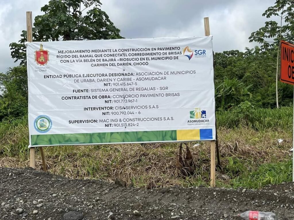La Administración Municipal de Carmen del Darién ha dado inicio a las obras de pavimentación en el corregimiento de Brisas. Este proyecto busca mejorar la conectividad de la zona con la vía Belén de Bajirá – Riosucio, como parte de un esfuerzo continuo por actualizar la infraestructura vial en el Chocó.