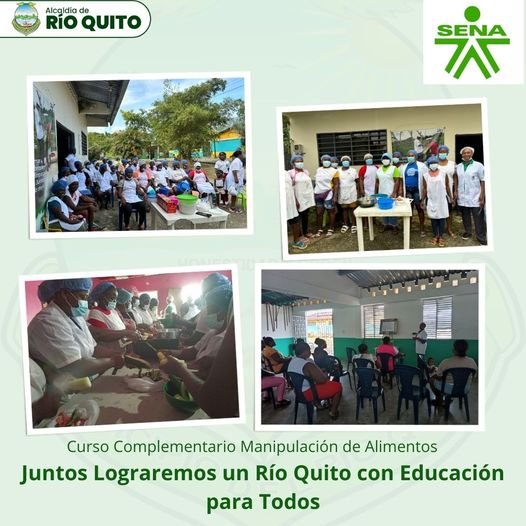 En un esfuerzo por fortalecer las habilidades y oportunidades de empleo en la comunidad de Río Quito, la Administración Municipal, dirigida por el señor Alcalde Eulises Palacios Cabrera, ha lanzado con éxito el curso complementario «Manipulación de Alimentos». Esta iniciativa, realizada en colaboración estratégica con el SENA y diversas entidades municipales, tuvo lugar en localidades clave como San Isidro, La Loma, Villa Conto y Paimadó.
