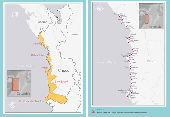 La encuesta fue aplicada en 44 comunidades costeras de los municipios de Juradó, Bahía Solano, Nuquí, Bajo Baudó y Litoral del San Juan.