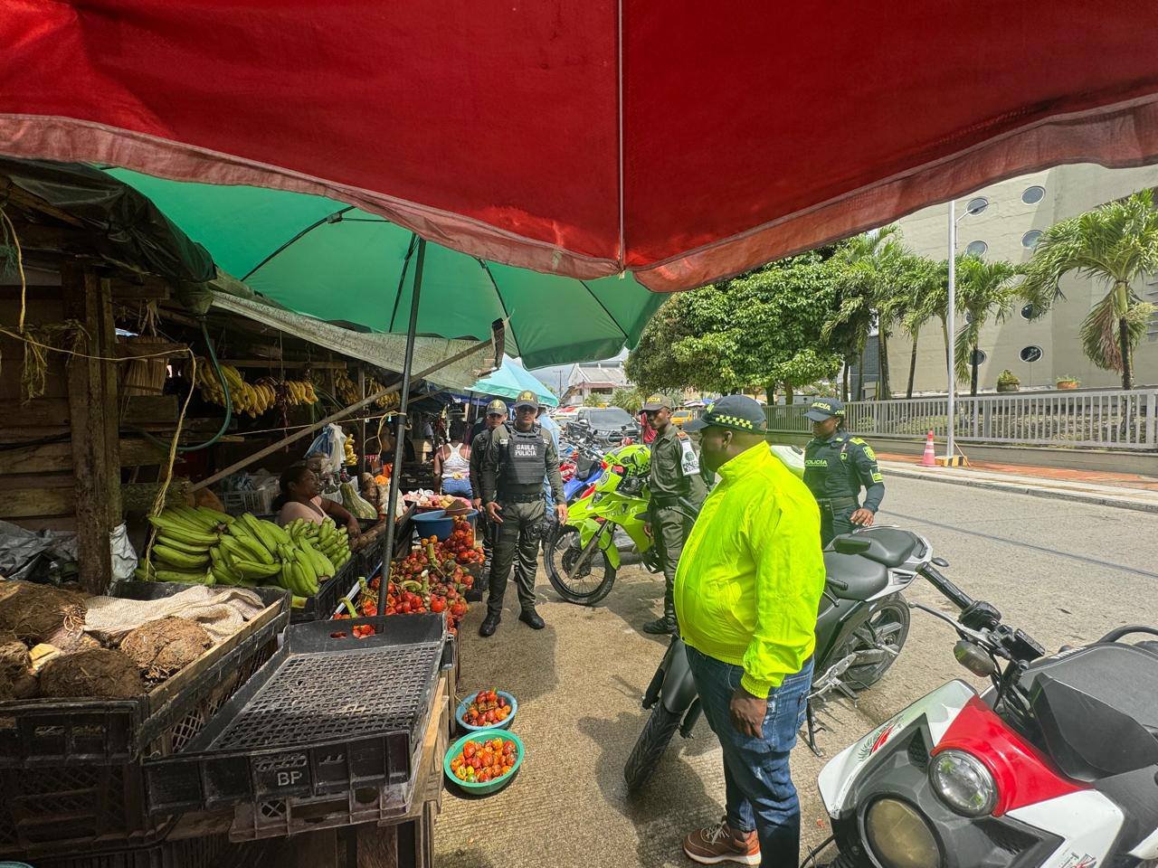 En el marco de la estrategia Plaza Segura, diferentes especialidades de la Policía Nacional —GAULA, SIJIN, Carabineros, Protección y Policía Comunitaria, Protección a la Infancia y Adolescencia, y Policía de Turismo— desarrollaron una jornada integral de prevención en la Plaza de Mercado de Quibdó,