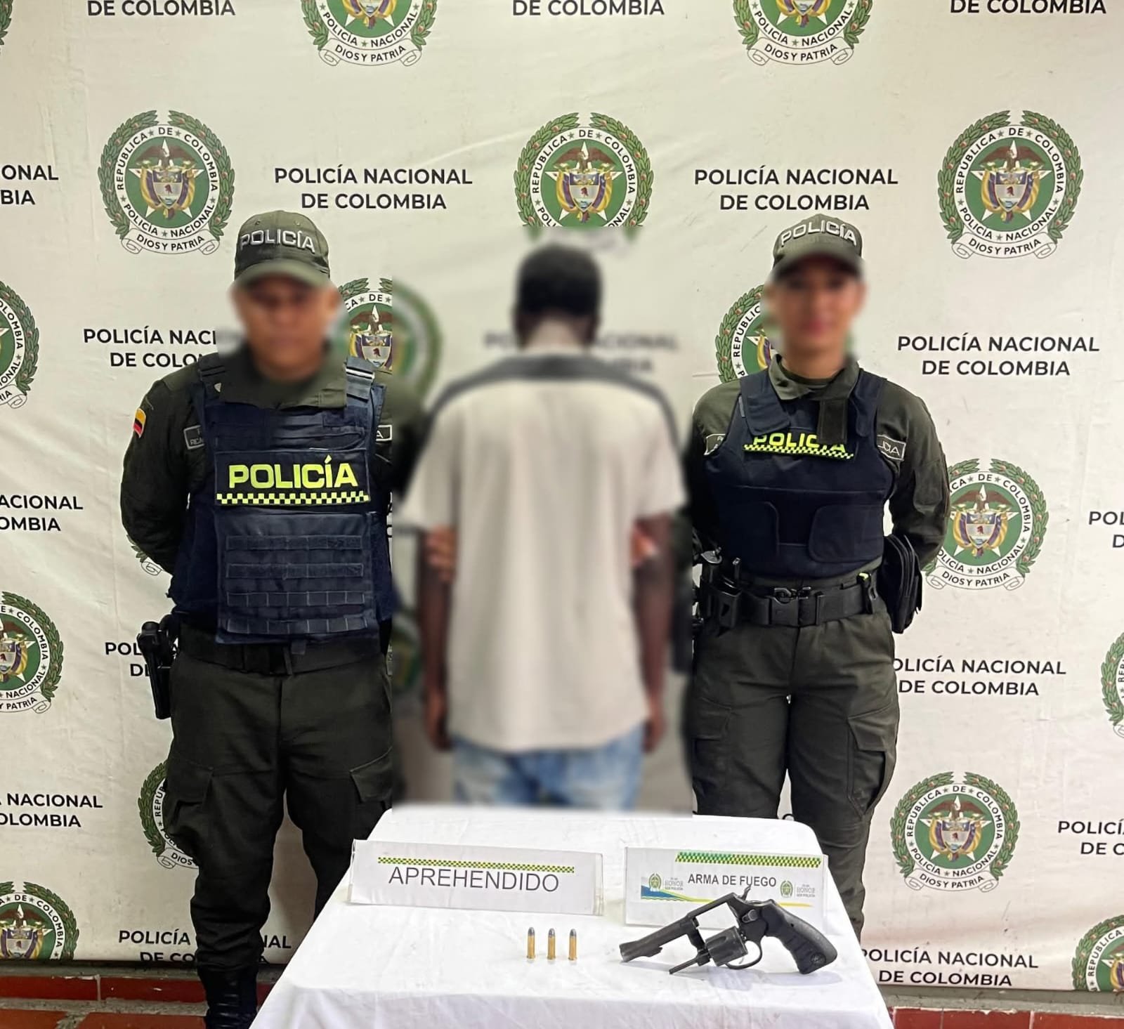 Quibdó. Los hechos se presentaron el día de hoy 22 de junio a las 04:45 a.m., cuando los uniformados observaron a dos hombres que, a bordo de una motocicleta, despojaban de sus pertenencias a dos mujeres que transitaban por el sector, utilizando un arma de fuego para intimidarlas. De inmediato, intervinieron, dándoles la orden de pare. Sin embargo, los individuos emprendieron la huida, iniciándose una persecución.