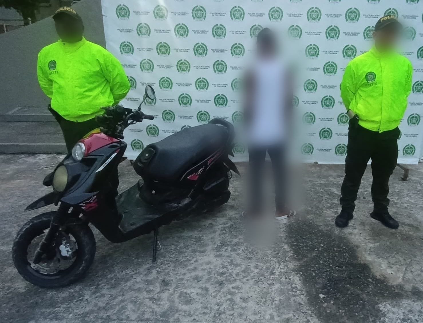 Quibdó. El procedimiento fue realizado en el barrio Buenos Aires, sector La Libertad, donde los uniformados detuvieron el tránsito de esta motocicleta y al verificar sus antecedentes presentaba reporte por hurto, por lo que de inmediato aprehenden al adolescente, quien venía conduciendo el automotor.