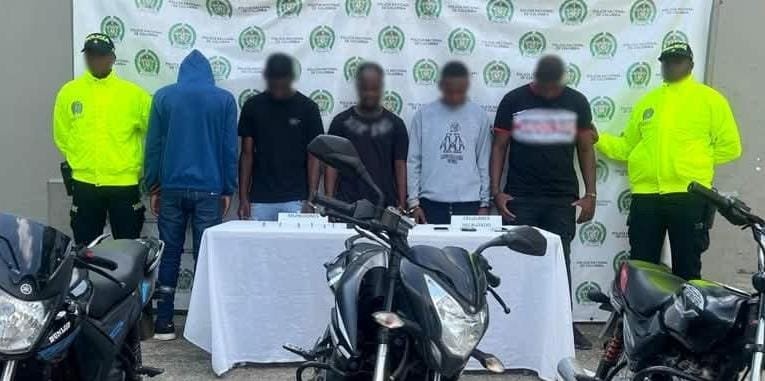La Policía de Quibdó logró la captura de cuatro individuos y la aprehensión de un sujeto en flagrancia, quienes se dedicaban al robo bajo la modalidad de fleteo. Durante la intervención, se les incautó un arma de fuego, munición, celulares y tres motocicletas, vehículos con los que se movilizaban para cometer sus delitos. Entre los detenidos, figuran Alias ‘Henry’ y Alias ‘Santiago’, quienes cuentan con antecedentes por hurto calificado y agravado, lo que revela la peligrosidad de la banda.