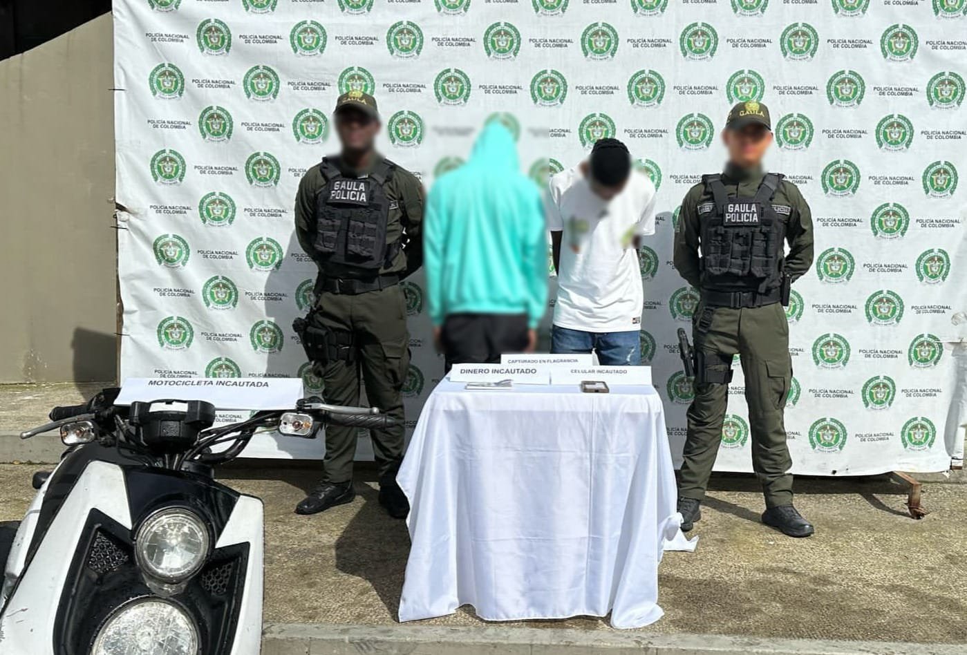 Durante el procedimiento, fue incautada una motocicleta y se recuperaron teléfonos celulares que habían sido hurtados previamente a la víctima como método de intimidación y presión.