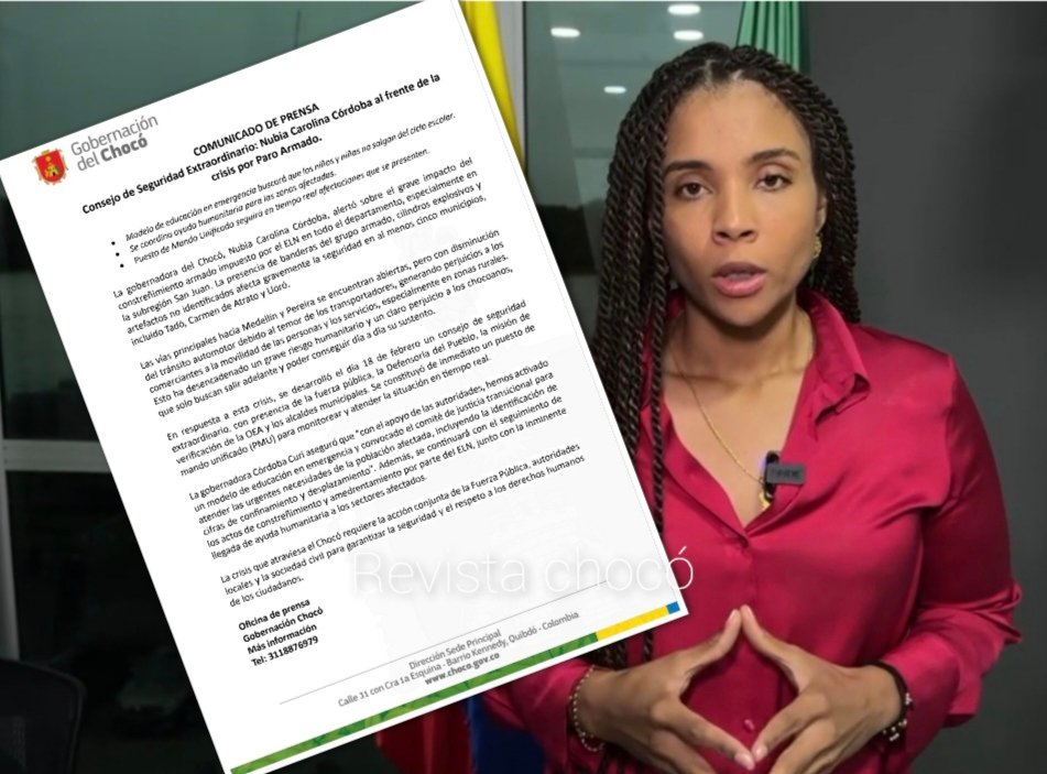 La Gobernadora del Chocó, Nubia Carolina Córdoba, declaró una emergencia por el paro armado impuesto por el ELN, que afecta gravemente la seguridad de al menos cinco municipios, incluyendo Tadó, Carmen de Atrato y Lloró. La presencia de banderas del grupo armado, cilindros explosivos y artefactos sin identificar ha generado temor entre la población y los transportadores, lo que ha disminuido el tránsito automotor y afectado el comercio y la movilidad, especialmente en zonas rurales.En respuesta a la crisis, se llevó a cabo un consejo de seguridad extraordinario el 18 de febrero, con la participación de la fuerza pública, la Defensoría del Pueblo, la misión de verificación de la OEA y alcaldes municipales. Se estableció un puesto de mando unificado (PMU) para monitorear la situación en tiempo real. Se ha activado un modelo de educación en emergencia para que los niños y niñas no se vean afectados en su ciclo escolar, y se está coordinando la llegada de ayuda humanitaria a las zonas afectadas.La Gobernadora Córdoba aseguró que se está trabajando con las autoridades para atender las necesidades de la población, incluyendo la identificación de personas confinadas o desplazadas. La crisis requiere la acción conjunta de la Fuerza Pública, autoridades locales y la sociedad civil para garantizar la seguridad y el respeto a los derechos humanos de los ciudadanos. Se continuará con el seguimiento de los actos de constreñimiento y amedrentamiento por parte del ELN.