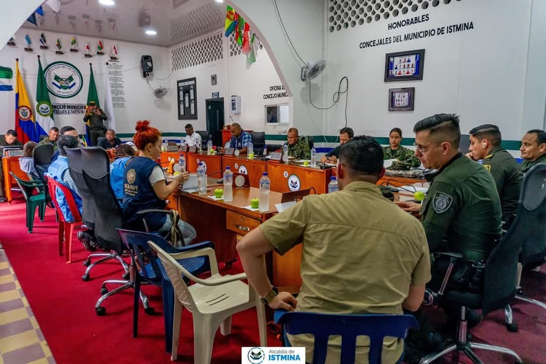 En las últimas horas, en las instalaciones del Honorable Concejo Municipal de Istmina, el alcalde Jaison Mosquera Sánchez, presidió junto al secretario del Interior del Chocó, Francisco Vidal, el Defensor Regional del Pueblo, Luis Murillo, La Misión de Apoyo al Proceso de Paz en Colombia (MAPP/OEA), Ejército Nacional, la Armada, Policía Nacional, entre otras autoridades, un Consejo de seguridad en donde se estudiaron las diferentes estrategias, que permitan ponerle frente a los hechos de violencia, que se vienen presentando en varios sectores de la subregión, en medio de la disputa territorial entre las Autodefensas y el ELN, en inmediaciones de los municipios de Medio San Juan, Sipí, Litoral del San Juan, Iró e Istmina, que ya dejan como resultado, centenares de desplazados y confinados, entre los que se reportan, niños, niñas, mujeres, adultos, ancianos, de comunidades afros, indígenas y mestizos, que habitan esta importante zona.