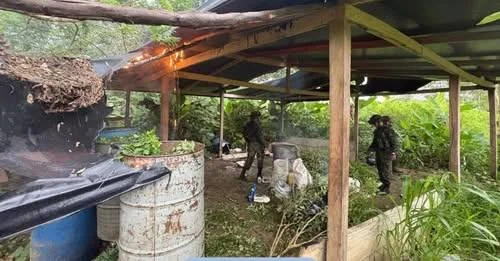 El Batallón de Selva N°. 54 ‘Bajo Atrato’, perteneciente a la Brigada 15, logró la ubicación y destrucción de un laboratorio para el procesamiento de pasta base de coca, en la vereda Carmelias, jurisdicción del municipio de Carmen del Darién.