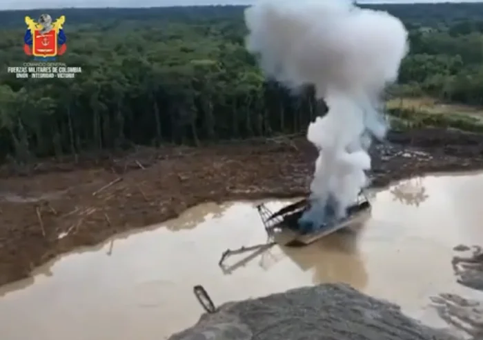Estas explotaciones mineras del río Quito, en el departamento de Chocó (oeste) pertenecían presuntamente al Clan del Golfo, y con su destrucción «se protege la capa vegetal, además del componente hídrico, fauna, flora y suelo», los cuales se ven afectados por el uso de maquinaria y químicos para realizar la extracción ilícita de minerales».