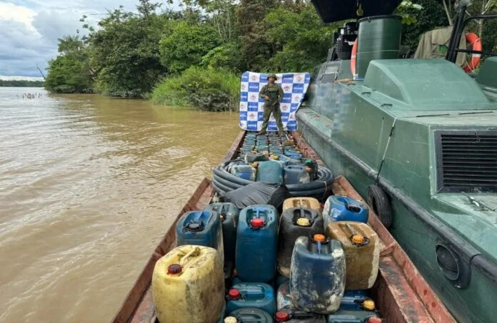 En una operación de registro y control en aguas del río Atrato, la Armada de Colombia confiscó tres mil galones de ACPM, lo que afecta significativamente las finanzas de grupos criminales en el departamento de Chocó. Según investigaciones preliminares, este combustible estaba destinado para el procesamiento de alcaloides y actividades de minería ilegal.