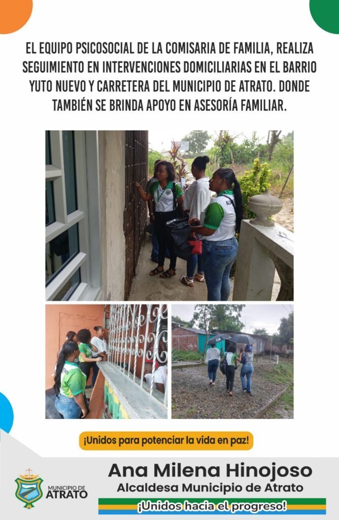 La Comisaría de Familia, en colaboración con equipos psicosociales especializados, sigue adelante con su programa de intervenciones domiciliarias en los distintos barrios de la cabecera municipal. Este esfuerzo busca proporcionar apoyo y atención personalizada a las familias, abordando sus necesidades de manera directa y efectiva.