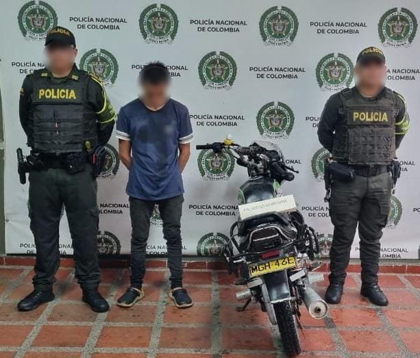 Quibdó. Durante el procedimiento, los uniformados de Tránsito le ordenaron detenerse al conductor de una motocicleta al realizar la verificación de los sistemas de identificación del vehículo, se observó que el número de motor DUZWJE21100 y el número de chasis 9FLA18AZ6KDL65645 estaban limados, lo que impedía la plena identificación del automotor. Debido a esta alteración, se procedió a la captura del individuo por el delito de falsedad marcaría.