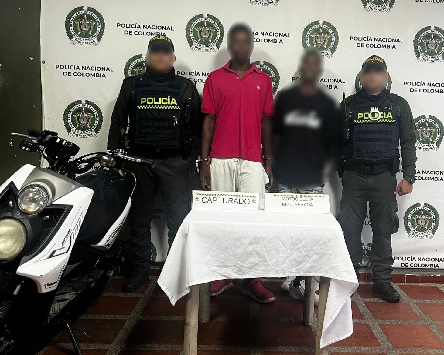 Quibdó. Siendo aproximadamente las 05:40 a. m., mientras las patrullas de vigilancia realizaban labores de patrullaje en el barrio La Paz, una ciudadana alertó a la policía sobre el hurto de su motocicleta Yamaha BWIS blanca. De inmediato, se implementó un plan candado, logrando ubicar el vehículo y a los presuntos responsables.