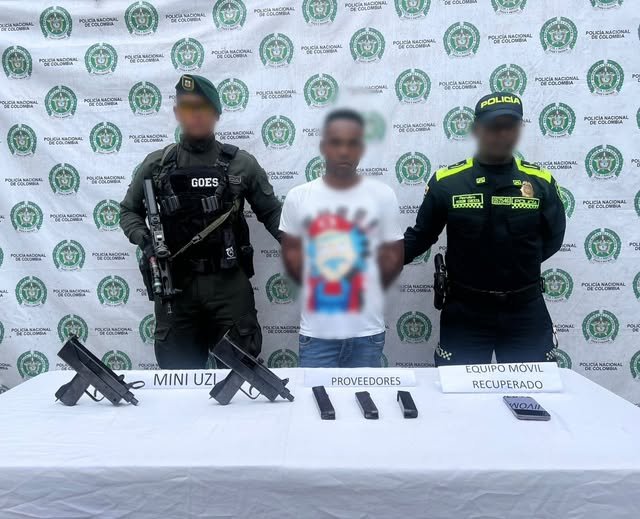En la diligencia fueron incautadas dos subametralladoras, tres proveedores y un equipo móvil recuperado, acción que representa un importante golpe a esta estructura con injerencia en esta zona de la capital chocoana.