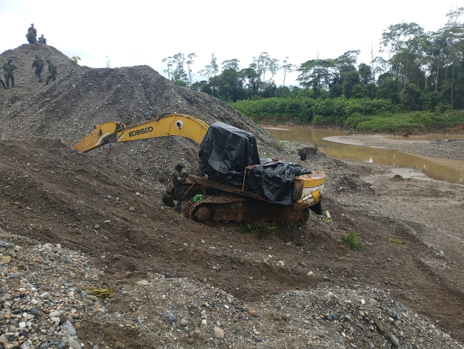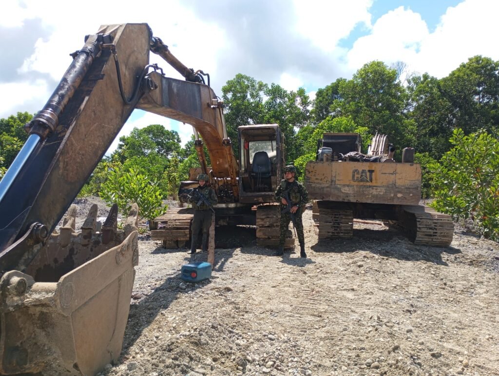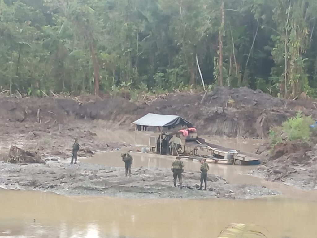 En zona rural del municipio de Cértegui departamento de Chocó, en labores de reconocimiento de área y a su vez de control contra este delito, a través de la Décima Quinta Brigada del Ejército Nacional, en apoyo a la Brigada Contra la Minería Ilegal y en coordinación con la Unidad Nacional contra la Minería Ilegal de la Policía Nacional, fueron intervenidas siete unidades de producción minera donde se extraía oro mediante el empleo de un “dragón brasilero”, cuatro excavadoras, dos motobombas y dos motores industriales.