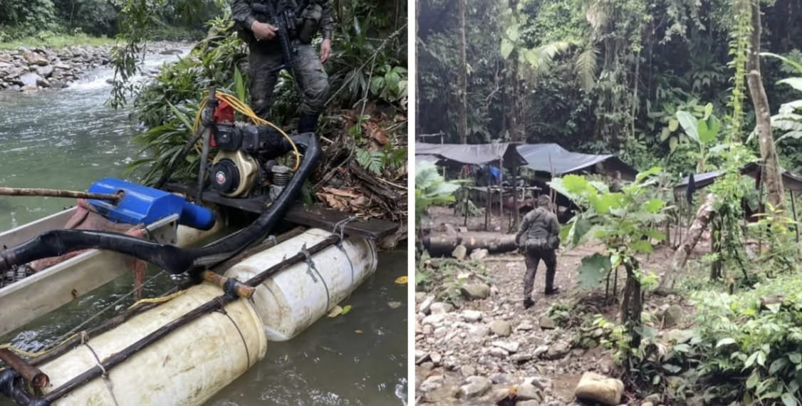 Durante el operativo, también se procedió a la inutilización de maquinaria, entre ellas una draga minera valorada en aproximadamente 30 millones de pesos, utilizada para la extracción ilegal de oro en territorios de alta sensibilidad ambiental.