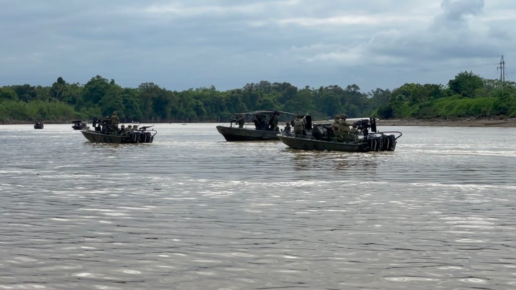 En desarrollo de operaciones militares ofensivas en contra del Clan del Golfo y el ELN , en el marco del Plan de Campaña Estratégico Conjunto Ayacucho – Tiempo 2 – las Fuerzas Militares, mentinen la dinámica operacional en los principales ríos y vías del departamento del Chocó.