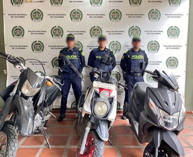 Gracias a la rápida y oportuna denuncia de un ciudadano, unidades del cuadrante Santo Domingo de la Estación de Policía Quibdó lograron recuperar tres motocicletas que habían sido reportadas como hurtadas. Los vehículos, hallados en estado de abandono en el barrio Medrano, fueron verificados en el sistema con apoyo de la SIJIN, confirmando uno de los reportes por hurto activo. Entre las motos recuperadas se encuentran una Yamaha BWS blanco con rojo (placa FGK21D), una Dio negra (placa ZLK30E) y una Yamaha 250 (placa KXD17C).