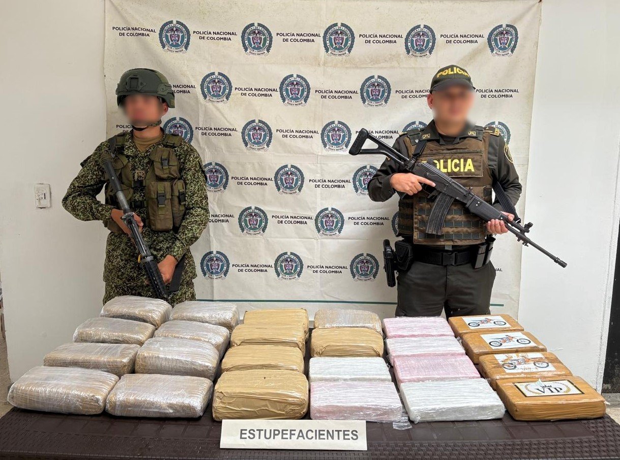 Juradó. Durante la operación, los uniformados observaron a varios ciudadanos cargando una lancha tipo canoa quienes, al notar la presencia de las autoridades, los sujetos emprendieron la huida y arrojaron una bolsa al interior de la embarcación, al verificar el contenido, se encontraron dos bolsas negras que contenían 24 panelas con características similares al clorhidrato de cocaína y cannabis.