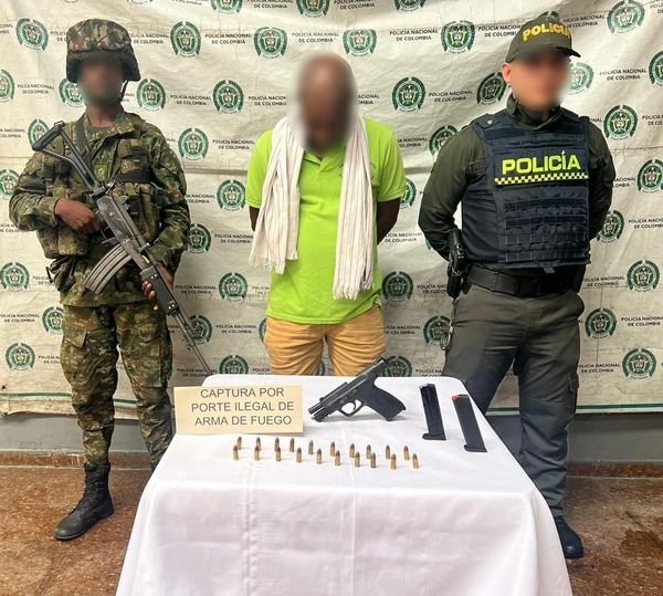 #Tadó. Durante labores de patrullaje, registro, control e identificación de personas, en coordinación con el personal del Ejército, sobre la vía Tadó-Pereira, sector La Loma de Chapaleta, se sorprendió a un ciudadano cuando arrojaba al suelo un bolso negro. Al verificar el contenido del bolso, se encontró un arma de fuego tipo pistola calibre 9 milímetros, de fabricación americana, junto con dos proveedores y 20 cartuchos para la misma. Al solicitarle la documentación correspondiente, el individuo manifestó no poseerla.