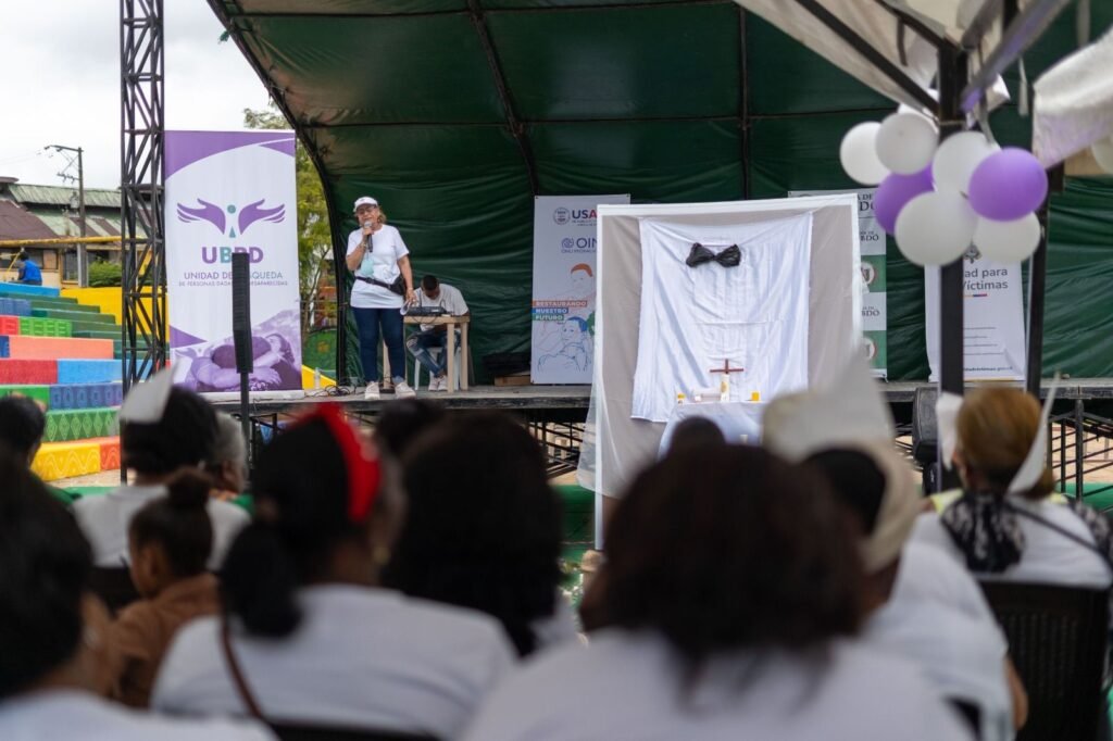 Durante la conmemoración, Judys Elena Murillo Martínez, coordinadora territorial de la Unidad de Búsqueda en el Chocó, Judys Elena Murillo Martínez, presentó cifras que reflejan la magnitud de la desaparición en todo el país. Reveló que, hasta la fecha, Colombia registra 111.640 personas desaparecidas, 28.261 solicitudes de búsqueda, 1.805 cuerpos recuperados y 319 entregas dignas y culturalmente pertinentes en territorios étnicos.