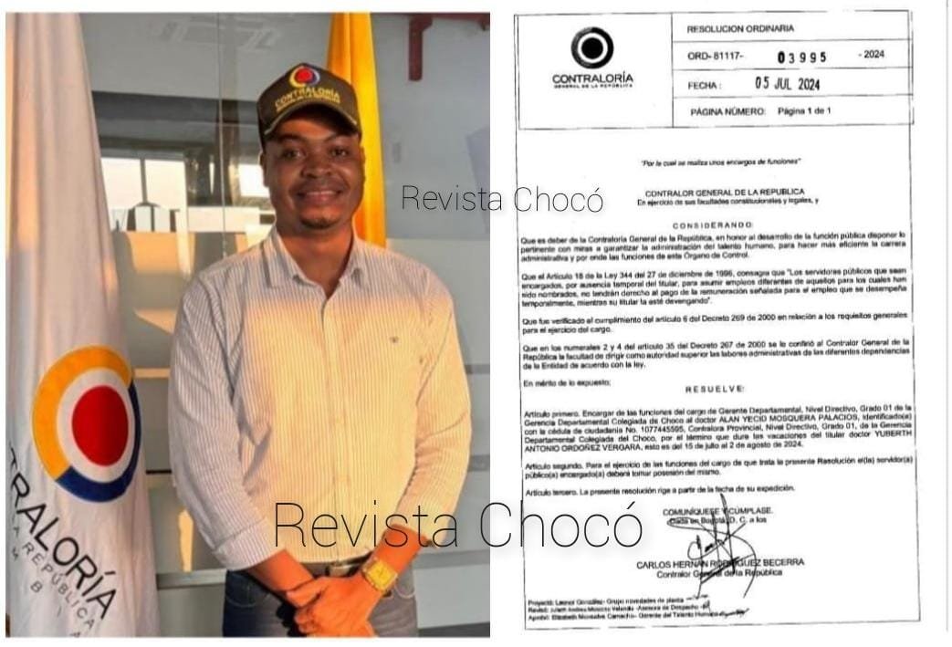 Revista Chocó como medio de comunicación, pudo averiguar y establecer que en un acontecimiento relevante para el departamento del Chocó, Alan Mosquera, quien previamente se postuló como candidato a la alcaldía de Quibdó, ha sido designado como gerente (e) de la Contraloría General de la República. Este nombramiento resalta por su significativa trayectoria y compromiso con la transparencia y la eficiencia administrativa en la región. #Revistachocó