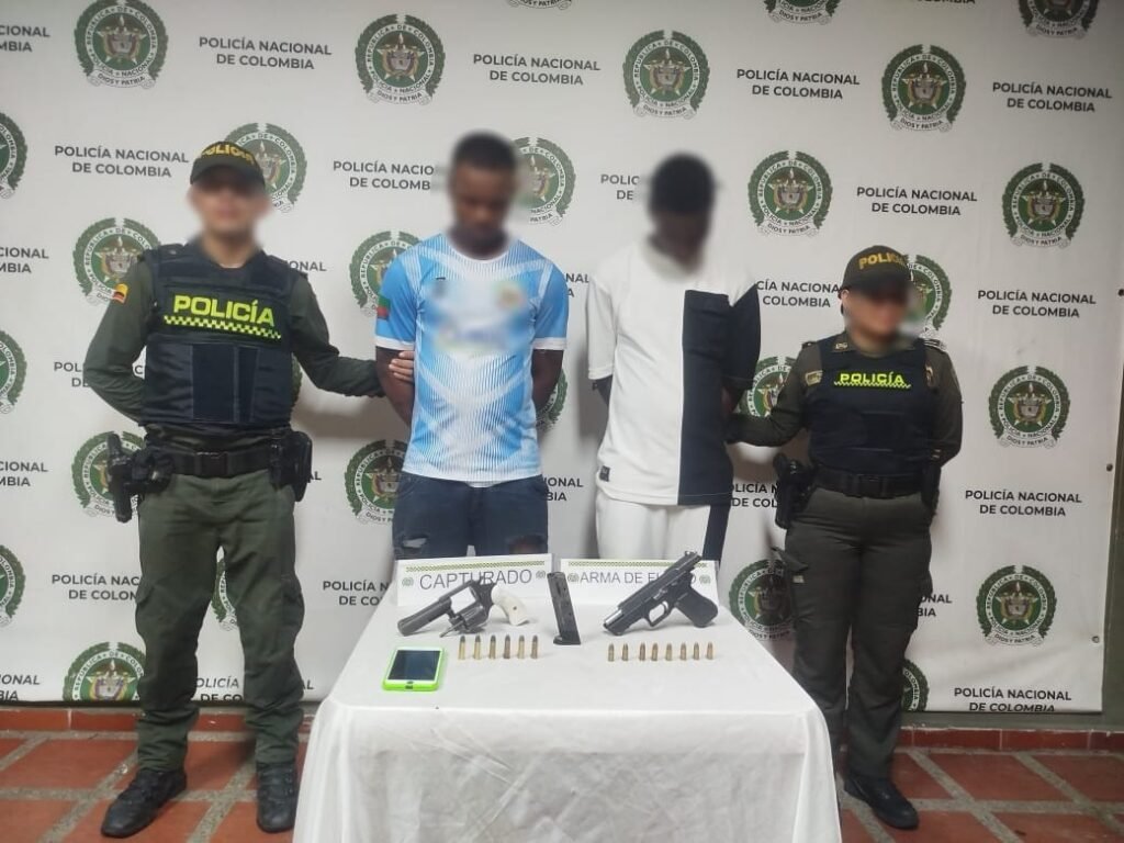 Quibdó – Los hechos se desarrollaron el 8 de septiembre de 2024, a las 23:20 horas. Durante el procedimiento, se les incautaron dos armas de fuego: una pistola marca Jericó 941FL con un proveedor y ocho cartuchos 9mm, y un revólver marca Special, calibre 38. Ninguno de los capturados tenía permiso para portar estas armas.