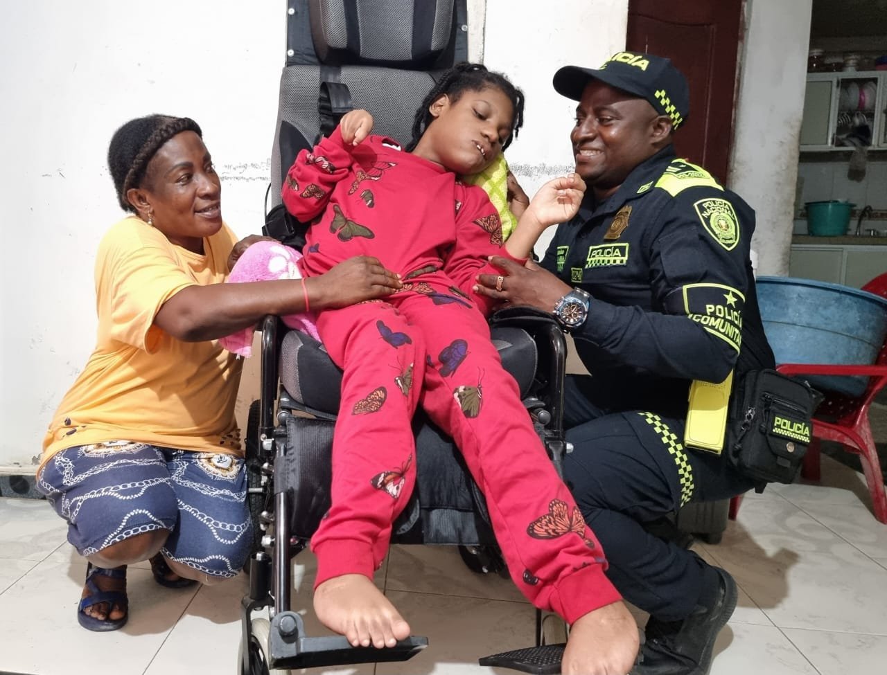 El 7 de agosto, en el barrio Kennedy, un momento de profunda emoción unió a toda una comunidad. Natalia Andrea Córdoba Quejada, una joven de 18 años diagnosticada con parálisis cerebral espástica, recibió de manos de los uniformados de la Policía Comunitaria una silla de ruedas especial que cambiará para siempre su vida.