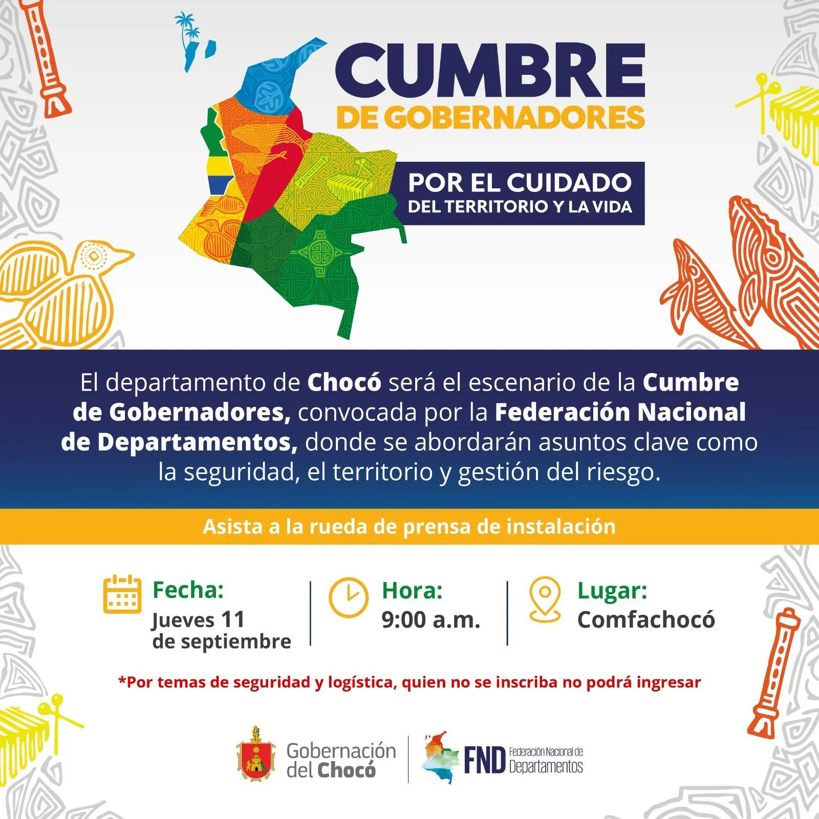 Este jueves 11 de septiembre, el departamento del Chocó será, por primera vez, sede de la Cumbre de Gobernadores convocada por la Federación Nacional de Departamentos (FND).