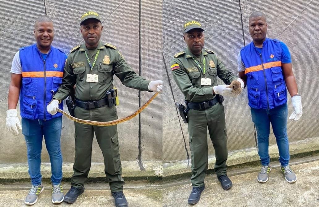 Quibdó. Gracias al reporte oportuno de un ciudadano, la patrulla de control ambiental del Grupo de Carabineros acudió al Barrio Medrano, en Quibdó, donde se encontraban dos especies silvestres en situación de riesgo: una serpiente cazadora y un búho. Ambas fueron rescatadas de manera segura y entregadas a la Corporación Autónoma Regional del Chocó, Codechocó para su evaluación y posterior reintegración a su hábitat natural.