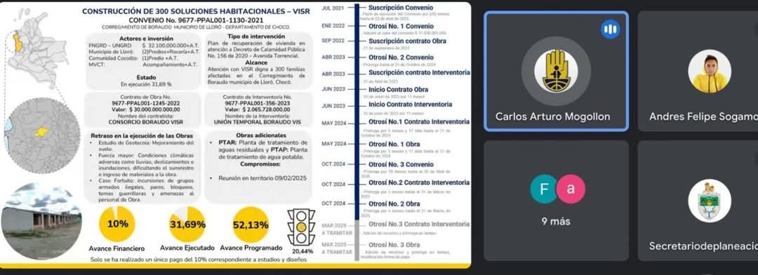 El pasado 6 de febrero de 2025, se llevó a cabo de manera virtual una reunión clave para definir la continuidad del proyecto de construcción de 300 viviendas destinadas a solucionar la histórica problemática habitacional que afecta a los habitantes del corregimiento de Boraudo. La falta de avances en las obras ha mantenido a la comunidad en condiciones vulnerables y expuestas a las inclemencias de la naturaleza.