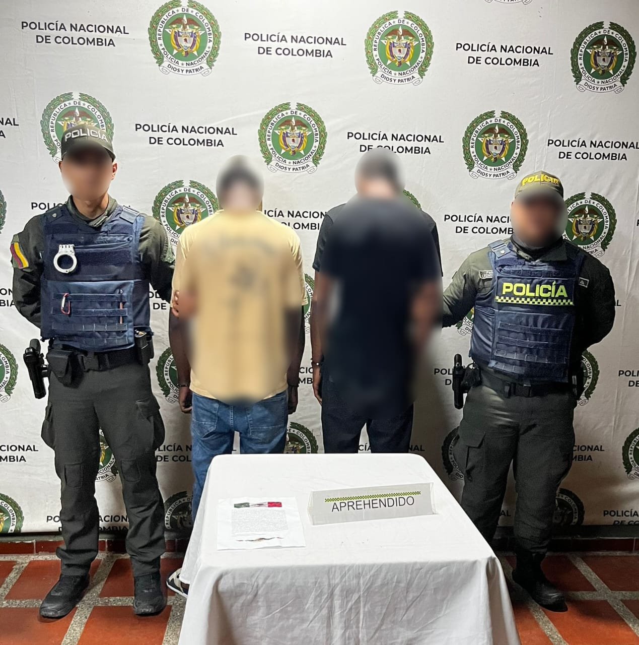 A los sujetos se les materializaron sus derechos como personas aprehendidas y fueron puestos a disposición de las autoridades competentes por el presunto delito de terrorismo, conforme al Artículo 343 del Código Penal Colombiano.
