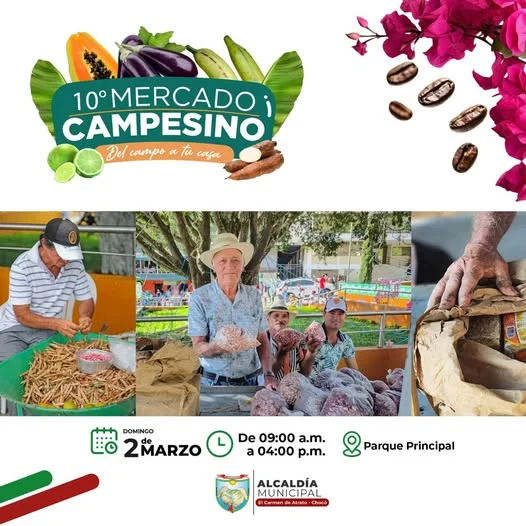 Este domingo 2 de marzo, El Carmen de Atrato vivirá una nueva edición del Mercado Campesino, evento que promete ser una fiesta del campo y la producción local. Desde las 9:00 a.m. hasta las 4:00 p.m., el Parque Principal será el escenario donde los agricultores de la región serán los protagonistas, destacando la calidad de sus productos y el esfuerzo que cada día realizan para alimentar a la comunidad. En esta edición, el mercado estará centrado en resaltar la producción agrícola y fortalecer el vínculo entre los consumidores y quienes trabajan la tierra.