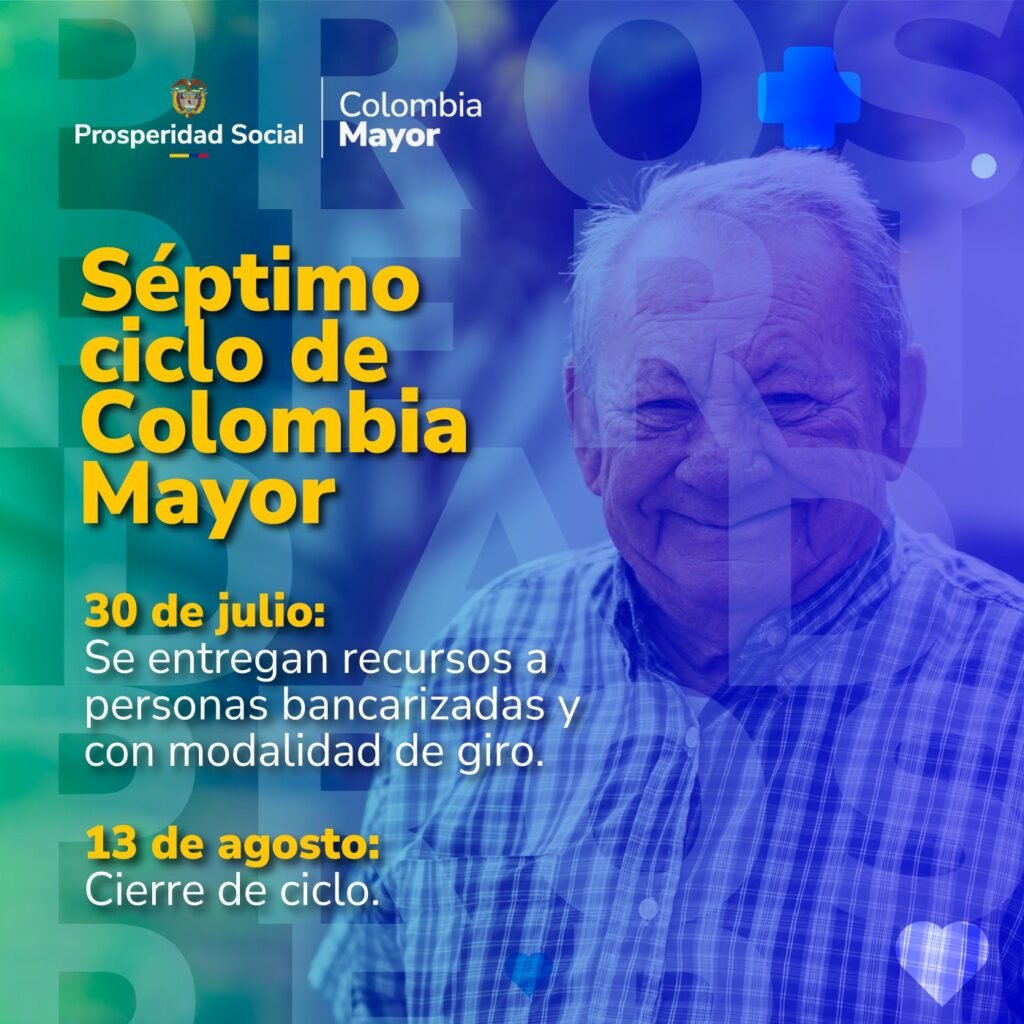 Quibdó, Chocó, 28 de julio de 2025. La gerente regional de Prosperidad Social en Chocó, Katherin Jiseth Garcia Gil anunció que este miércoles 30 de julio iniciará el séptimo ciclo de pagos del programa Colombia Mayor, dirigido a las personas mayores en situación de pobreza y vulnerabilidad. La jornada se extenderá hasta el 13 de agosto.
