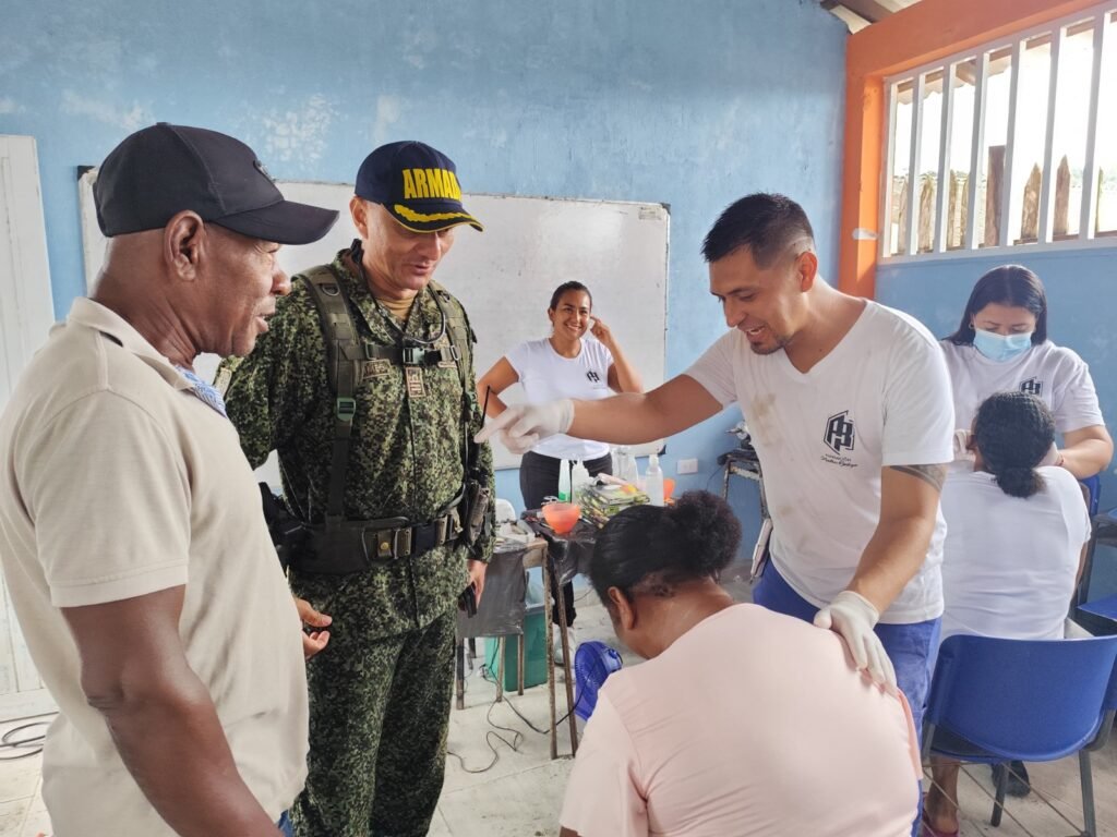 La Armada de Colombia en articulación con entidades de gobierno municipal y diferentes fundaciones, llevaron a cabo una Jornada de Apoyo al Desarrollo en la que se brindó atención médica especializada, se entregaron de medicamentos y donaciones, se realizó la esterilización de mascotas y se desarrollaron actividades recreativas a 1.257 personas, en el corregimiento de Jurubirá, departamento de Chocó.