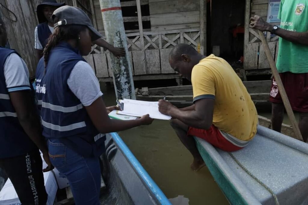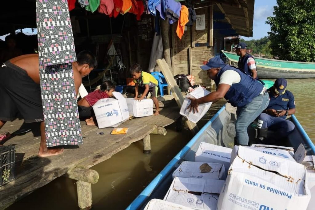 En paralelo, el municipio de Medio Baudó también comenzó la distribución de ayudas a las comunidades afectadas por el mismo fenómeno climático. A través de un esfuerzo conjunto entre la Alcaldía local, liderada por Ángel Victorio Zúñiga Ibargüen, y la Gobernación del Chocó, se entregaron kits de mercado a las familias afectadas en las zonas de la cuenca del río Baudó. La ayuda fue entregada en los sectores de Puerto Meluk y las comunidades del sector de arriba, desde Puerto Nucidó hasta Platanares, para apoyar las ollas comunitarias que se están instalando mientras esperan la llegada de más suministros.