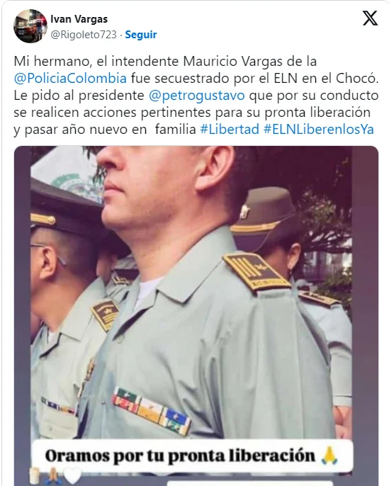 Ante este hecho, Iván Vargas, hermano del intendente se pronunció a través de sus redes sociales y le solicitó al presidente Gustavo Petro que por su conducto se realicen acciones pertinentes para su pronta liberación y así permitir que puedan pasar el año nuevo con toda su familia. Así mismo, le pidió a esa guerrilla que los liberen lo más pronto posible.