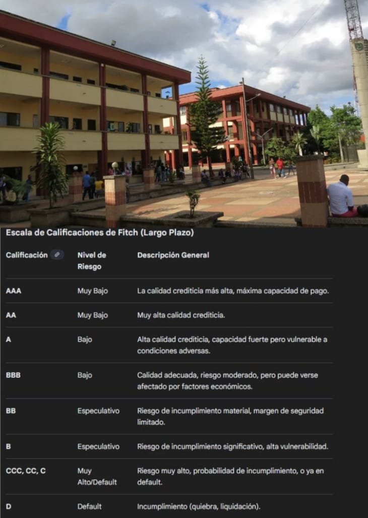 La calificación también considera factores adicionales debido a las irregularidades detectadas en la institución relacionadas con debilidades administrativas y financieras, así como la existencia de gastos no reportados ni causados en 2024 que aún no han sido subsanados y que sustentan la pretensión de deuda, además del antecedente de incumplimiento del pago en dos cuotas de los préstamos de tesorería adquiridos a finales de 2023.