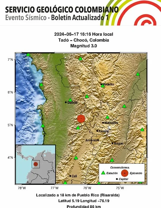 Permanezca atento a nuestras actualizaciones para más detalles sobre este evento sísmico en Tadó.