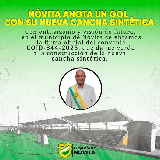 La cancha sintética será un espacio de encuentro y orgullo para toda la comunidad, uniendo esfuerzos institucionales y ciudadanos en torno al deporte como motor de transformación. Nóvita avanza con pasos firmes hacia el progreso y la inclusión.🙌🏽✨