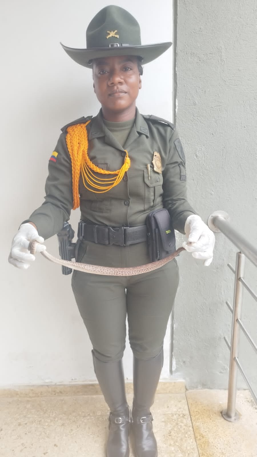 Quibdó: Los hechos ocurrieron cuando las autoridades recibieron el llamado a la 123, donde solicitaban la presencia de los policías de ambiental en estas dos residencias, donde se encontraban la serpiente cazadora y una tortuga.